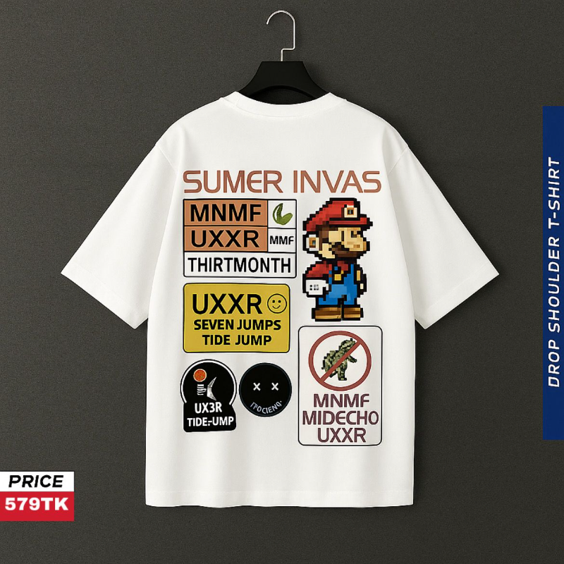 PREMIUM CLASSY PAPER MARIO EDITION DROP SHOLDER T SHIRT